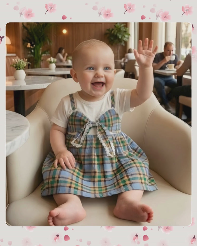 Made from 100% breathable cotton, it feels gentle on baby’s delicate skin and allows free movement all day. The playful checks, sweet bow detail, and sleeveless frock design make it perfect for outings, playtime, family gatherings, and photoshoots.
