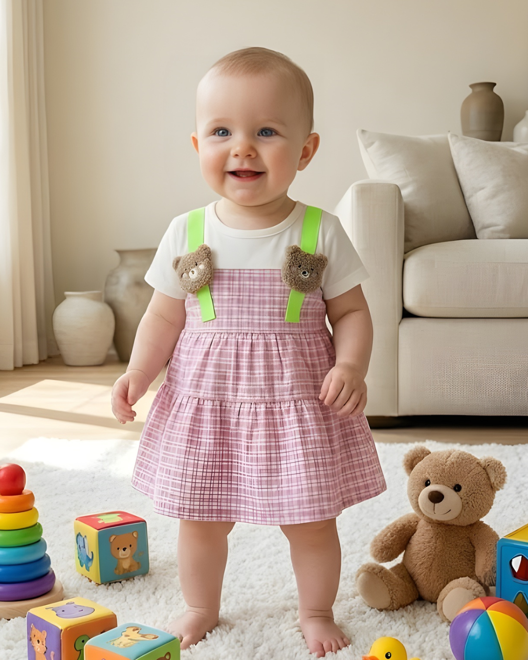 Made with soft, breathable fabric, this frock feels gentle on delicate baby skin and allows free movement for crawling, standing, and playtime. The playful straps and charming details make it perfect for daily wear, outings, photos, and special moments.