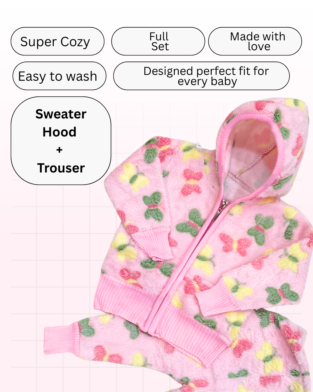 Pink Butterfly Zip Hood Outfit ( Hood + Trouser) Full Set
